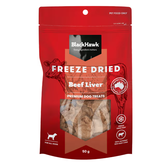 Treat your dog to the pure taste of nutrition with Black Hawk Freeze-Dried Beef Liver Dog Treats. Made from 100% Australian grass-fed beef liver, these single-ingredient treats are gently freeze-dried in Tasmania to preserve their natural flavour, aroma, and nutrient profile. Packed with essential vitamins, minerals, and protein, this natural superfood helps support your dog’s muscle health, immune system, and overall vitality.