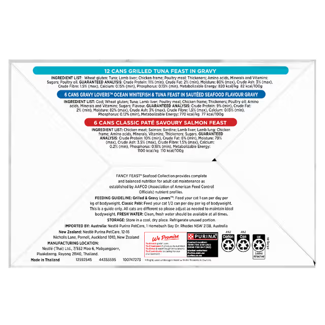 Treat your cat to a gourmet dining experience with the Fancy Feast Seafood Collection Variety Pack. Expertly crafted by Purina, these smooth and delicious seafood pâtés deliver complete and balanced nutrition tailored for adult cats. Each can is made with high-quality ingredients and irresistible flavours, ensuring mealtime variety while supporting your cat’s overall health and wellbeing.