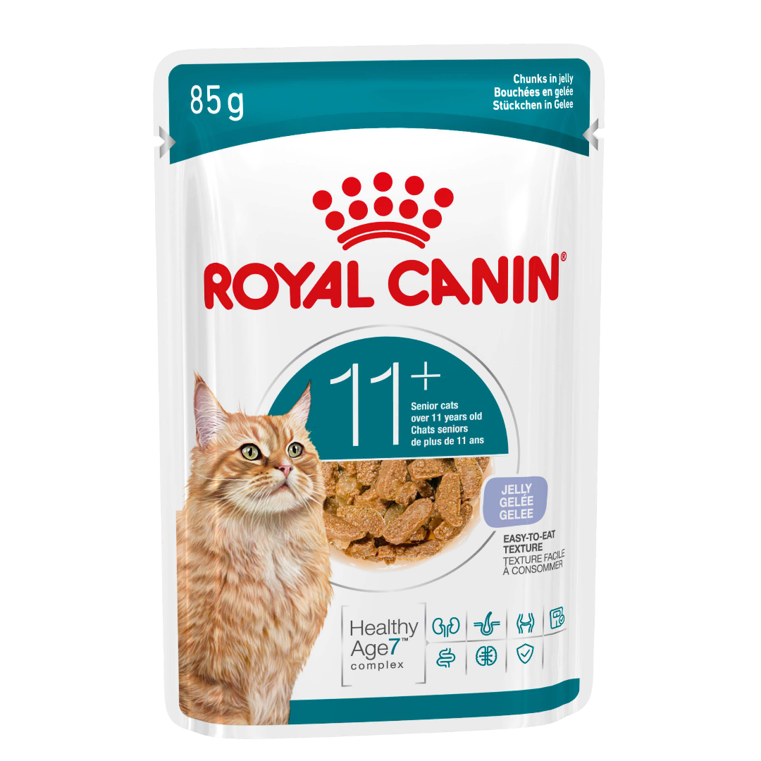 Support your senior cat’s health and vitality with ROYAL CANIN® Ageing 11+ Chunks in Jelly, specially formulated for cats aged 11 years and over. Designed and tested with senior cats, this easy-to-eat wet food features a soft chunk texture in jelly to encourage appetite and enjoyable mealtimes. Enriched with the exclusive HealthyAge7™ Complex, it delivers targeted nutrition to help maintain seven key areas of ageing health, including mobility, digestion, kidney function, brain health, immunity, and skin and coat condition.